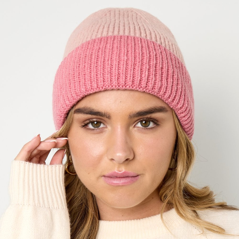 Beanie Roze en donkerroze rand
