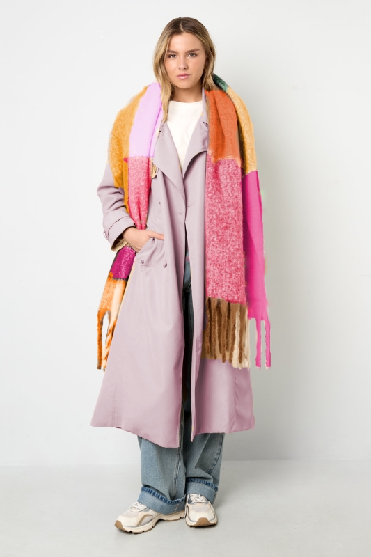 Niet alleen heerlijk warm, maar zeker ook heel stijlvol is deze warme sjaal in Roze met Oranje.
